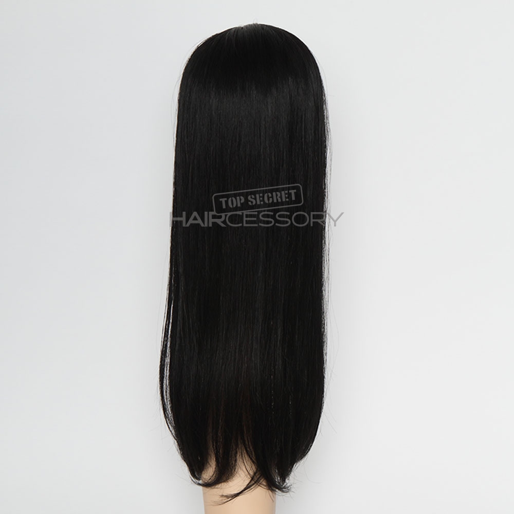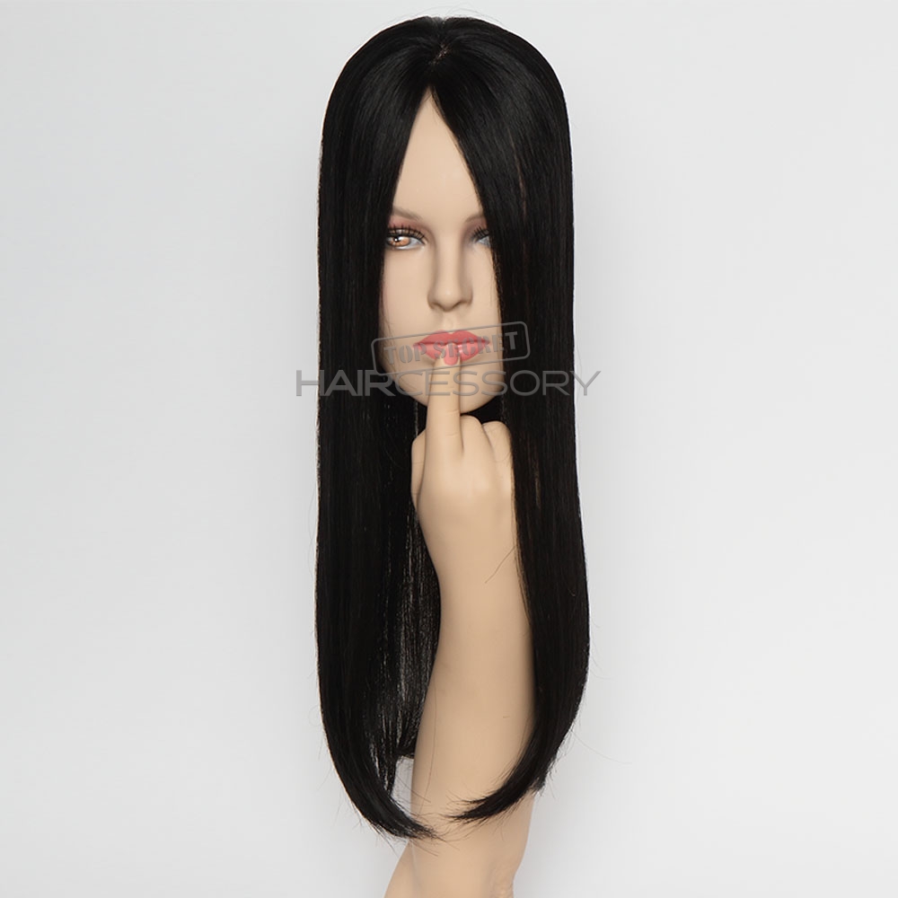 The Top Secret Topper 16″-18″ is specifically designed for those that love the look of long beautiful hair or like longer layers. The base is 6.5″ long by 5″ wide. Please note that you must have at least 12″-16″ of hair in the back in order for this piece to look good. If your existing hair is short and want to add length and volume with this piece, you must fill in the nape with 16″ extensions.